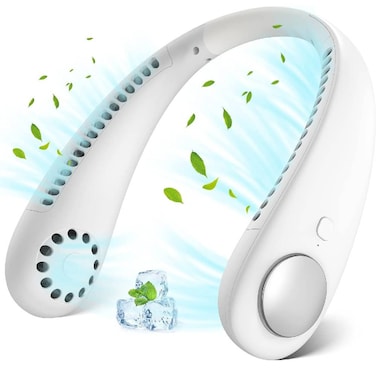 Portable Neck Fan For Travel & Personal Cooling, Hands-Free Bladeless Design, USB Rechargeable, Long Lifespan, Adjustable Speeds White