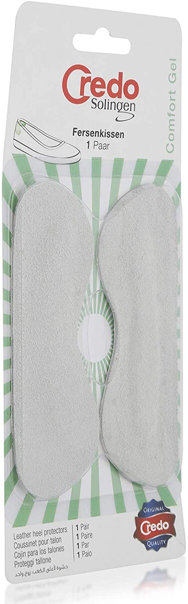 Product Description: Soothing for the heel. Made of extra thin, soft leather suede. Does not matter, no pressure points. Washable, anti-allergic and reusable.Product Features : Brand: Credo SolingenType: Foot CareDetails: Leather heel protectorsRemove the adhesive strip and place the heel protectors on the back in shoeSoothing for the heelWashable, anti-allergic and reusable
