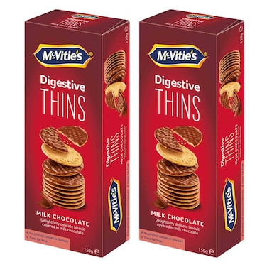 Mcvitie's Digestive Thins Milk Chocolate Biscuit 150g Pack of 2
