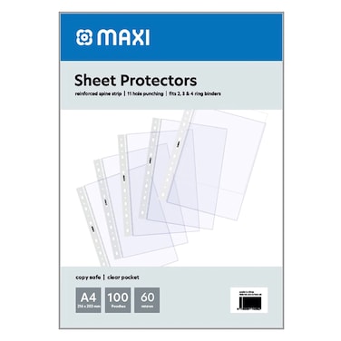 Maxi A4 Sheet Pocket 60 Micron Clear 100 PCS