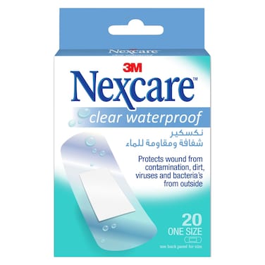 - Nexcare Clear Waterproof Bandages provide 100% protection from water and contamination