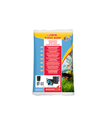 For mechanical prefiltration of fine dirt particles sera filter wool for the mechanical prefiltration consists of stable fibers that retain finer dirt particles for a longer time without sticking or collapsing sera filter wool can be washed out several times Suitable for all filters We recommended sera siporax Professional for the biological filtration sera siporax Professional is open pored and three dimensional for lasting pollutant breakdown sera filter media must be rinsed under warm water before using it for the first time Tip When used in combination with sera phosvec clear sera filter wool makes it easier to remove the bound substances
