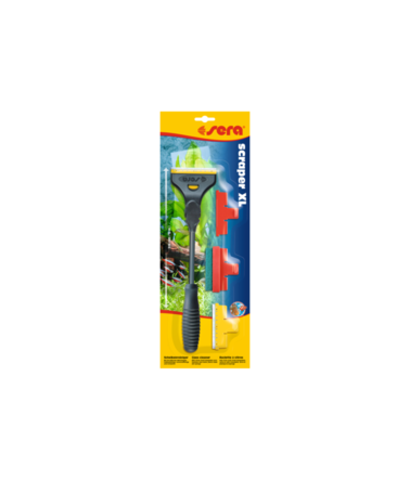 Glass cleaner for cleaning the inside aquarium glass appropriately and very gently The glass cleaners sera scraper XL and XXL allow quick and thorough removal of algae and other dirt on the aquarium glass Each set contains three different tools that are easy to change one stainless steel blade for glass one plastic blade for acryl glass and a sponge for soft layers for cleaning the inside aquarium glass appropriately and very gently Even persistent algae can be removed without effort sera scrapers are available in two versions XL 300 mm 12 in longXXL 600 900 mm 23 6 35 4 in long including a short handle