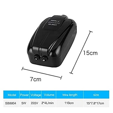 SB-8804, us plug: sobo ultra silent air pump for aquarium fish tank double outlets oxygen pump adjustable durable pump, imported and branded product, color and size as shown, in the package: 1 piece.