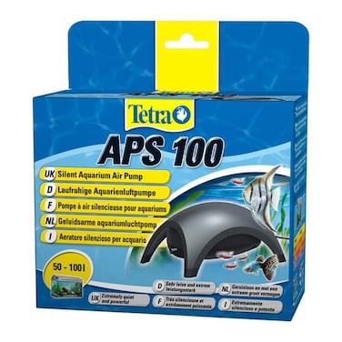 - <p>The Tetratec APS 100 Air Pump is attached to the external side of the aquarium to provide a high rate of airflow in aquariums that are 100 liters in volume, The air pump also increases oxygen levels within the aquarium, runs air-drive ornaments, and operates underwater gravel, Its airflow function can be adjusted to suit your taste or a particular function Box Contents:1 x Tetra Tetratec APS 100 Air Pump - 100L, 2.5W