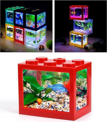 [Decoration] There are two surfaces of the aquarium are transparent and the view inside the aquarium is clearly visible, which is very interesting. The creative building block design can be used to shape multiple fish tanks into different shapes to decorate your desktop.