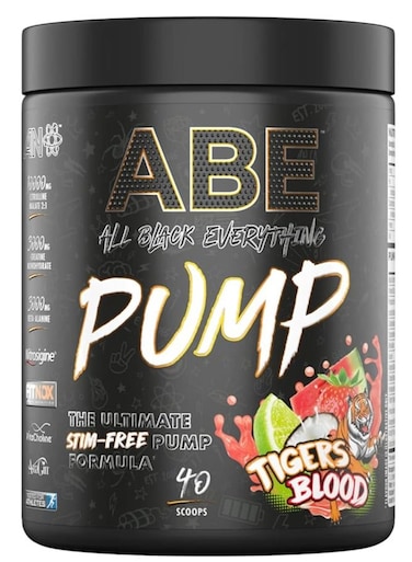 Applied Nutrition Abe Pump Pre Workout Stim Free, Increase Physical Performance, Enhance Energy And Pump, Tigers Blood Flavor, 500gm, 40 Servings