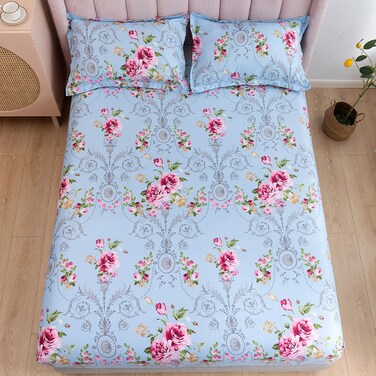 3-Piece King Size Printed Fitted Sheet Set 1 Fitted Sheet + 2 Pillow Cases Microfibre KEF