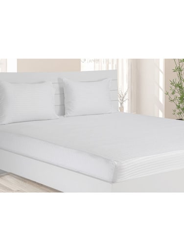 Krude Fitted Sheet 1Pc-Fabric: 100% Cotton 250Tc Sateen 1cm Stripe - Color:, White-Size: King 200X200+30cm Cotton, White 200X200+30cm