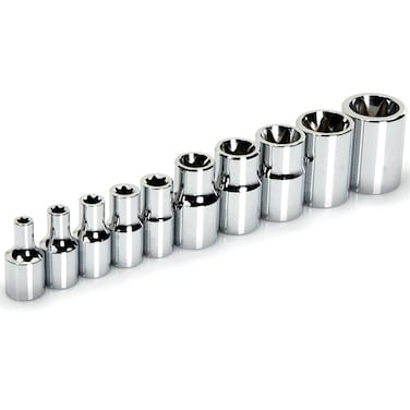 Generic-E Torx Star Socket Set 1/4-Inch and 3/8-Inch Drive CR-V Steel E4-E18 10-Sockets