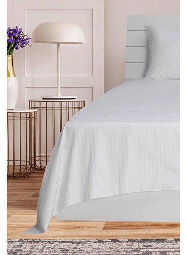 Krude 100% Cotton 250Tc Sateen 1cm Stripe Flat Sheet 2Pc Set Cotton, White 160X220cm