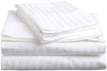 Hotel Linen Klub King Bed Sheet 3pcs Set , 100% Cotton 250Tc Sateen 1cm Stripe, Size: 260x280cm + 2pc Pillowcase 50x75cm , White