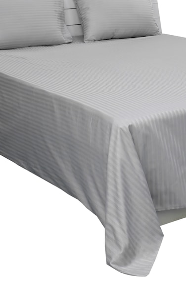 Hotel Linen Klub Queen Bed Sheet 3pcs Set , 100% Cotton 250Tc Sateen 1cm Stripe, Size: 240x260cm + 2pc Pillowcase 50x75cm , Silver
