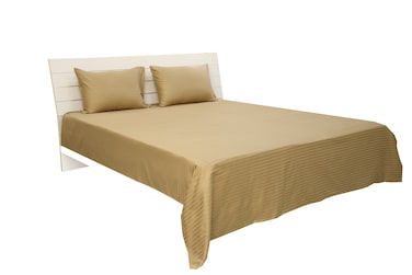 Hotel Linen Klub Single Bed Sheet 2pcs Set , 100% Cotton 250Tc Sateen 1cm Stripe , Size: 160x220cm + 1pc Pillowcase 50x75cm , Bronze