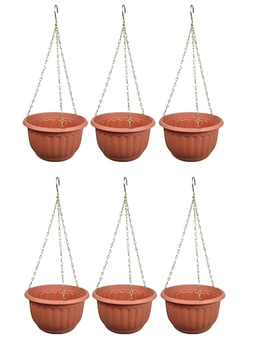 6Pc Hanging Flower Pot With Draining Hole Plastic Planter for Indoor and Outdoor Plants Terracotta 15X12cm