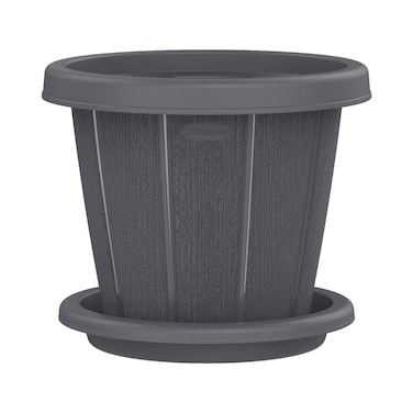 Cosmoplast Cedargrain Flower Pot With Tray Dark Grey 6inch