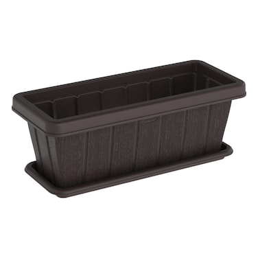 Cosmoplast Cedargrain Rectangular Planter With Tray Dark Brown 18inch