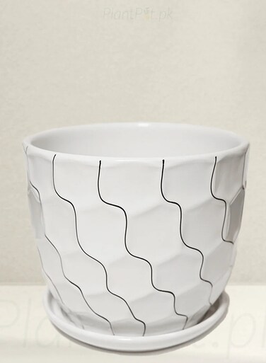 Ceramic Plant Pots White with Cracked Line Design, Suitable for Indoor and Outdoor Use-S