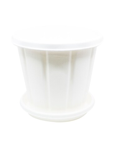 Cosmoplast Pot Woodgrain 6" With Tray White