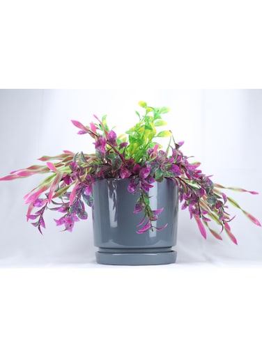 Round Gray Ceramic Flower Pots with Drainage Hole and Saucer Succulent Garden Pots For Indoor And Outdoor-Small