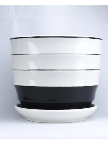 Vsell24 Ceramic Flower Plant Pots Black And White Striped with Saucer for Indoor And Outdoor Garden, Fruits, Vegetable Plantation-M