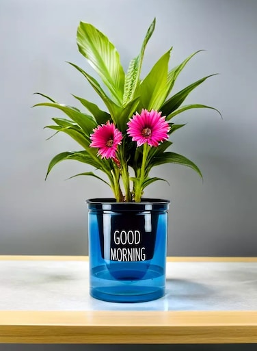 vsell24 High Durability Blue Good Morning Pots for Home or Office Decoration With Hydroponic System - Brighten Your Environment with Automatic Water Absorption (12cm x 10cm)