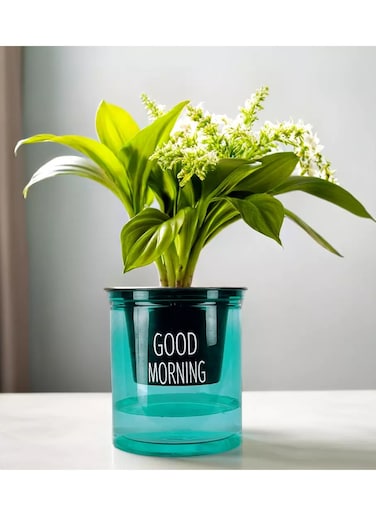 vsell24 High Durability Green Good Morning Pots for Home or Office Decoration With Hydroponic System - Brighten Your Environment with Automatic Water Absorption (12cm x 10cm)