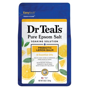 Dr Teal's Pure Epsom Salt Soaking Solution Bath Salt Prebiotic Lemon Balm and Pomegranate and Black Currant and Essential Oils 1.36kg