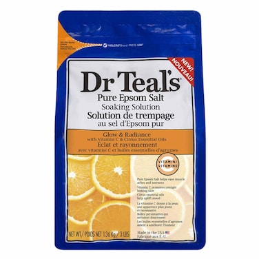 - Dr Teal's glow and radiance soak combines pure epsom salt with vitamin c and citrus essential oils to revitalize tired achy muscles