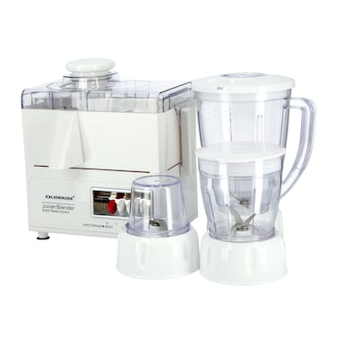 Power your way through a wealth of different food preparation tasks with the Olsenmark 4-in-1 Juicer Blender. The multi-function 650W food processor and blender is ideal for busy kitchens when space is at a premium. It has various uses and performs all food processing functions & juicing. It is going to be the only food processor needed for any of the tasks including grinding, blending, mixing, and juicing this easy to operate appliance does it all. Comes with a wealth of attachments: mixer, juicer, blender, and a coffee mill to cope with everyday taskThere are two different speed modes to allow you to handle soft or hard ingredients properly. Whether you need a quick spin or a thorough grinding; you can choose either to suit your needs and provide continuous speed, giving you a quick and easy way to prepare your food with precise and consistent results every time. It comes with a safety interlock to lock-in lid and ensures the processor can only be activated once the lid is secured in placeEnjoy creating a range of meals and recipes with this powerful, 650W food processor from Olsenmark. It has a wide mouth chute to process large fruits and vegetables with minimal prep work. It is very easy to use in the kitchen as well as being completely dishwasher safe for simple cleaning. 2-year manufacturer warranty provided.'