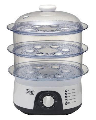 Black+Decker 775W 10 Liter 3-Tier Food Steamer With Timer White