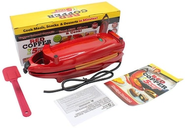 Grill Plate, Grill Press, Red Copper 5 Minute Chef Double-Sided Copper-Infused Grill Pan with Non-Stick Anti-Scratch Surface for Making Delicious Omelet (Red)
