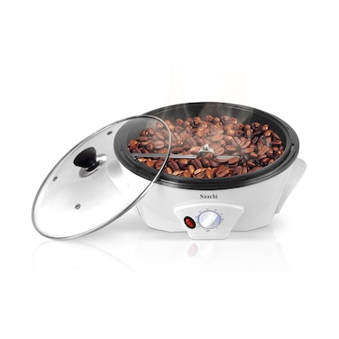 Saachi Coffee Roaster allows you to roast coffee beans and its die-cast roasting pan also promotes cooking. Its adjustable thermostat function ensures convenient use of the machine. The roasting process is what produces the characteristic flavor of coffee by causing the green coffee beans to change in taste. This appliance can also be used to make popcorns.