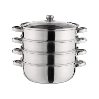 Eat healthily and stay healthy with Royalford 4 Layer Stainless Steel Steamer Pot.Royalford brings premium quality highly durable stainless steel 4 layer steamer pot with stay-cool handles, transfers uniform heat to steaming your favorite foods from seafood, fish, shellfish, lobster, beef, pork, crab, broccoli, poultry, tofu, vegetables, and grains, veggie, soup, rice, sticky rice, clam, baby food, Asian steamer Chinese dumplings and dim sum. You can enjoy your healthy meal with your family with your favorite food. This Royalford steamer pot is four-layer so it saves your time as you can steam rice and salad at the same time. Stay cool handles lets you lift over steamer pot easily with comfort and mental peace. Also, it has been designed perfectly for hassle-free cleanup. You can wash your steamer pot using detergent and brush with plain water. This steamer pot is dishwasher safe.Steaming vegetables rather than microwaving improves the flavor and keeps the nutrition and minerals. It is also great for steaming dumplings and it works perfectly for boiling eggs and chicken. You can boil and cook pasta and strain spaghetti with the insert. This Royalford stainless steel steamer pot comes with a tempered glass lid which is able to provide a clear view. A relief steam vent above the lid reduces pressure to avoid food spillage. Our large 4 tier steamer can be used as a multifunction stockpot like induction, hot plate, gas burner, ceramic, stovetops, halogen.