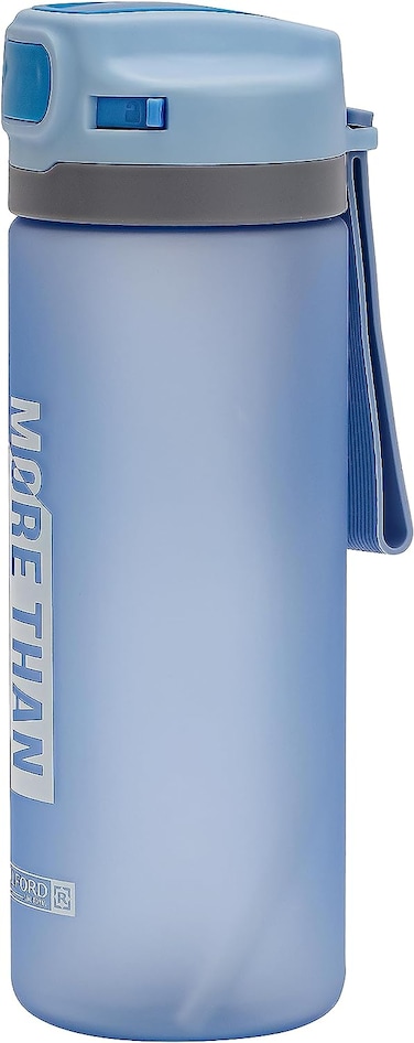 Quench your thirst and conquer the day. Royalford offers a light and sturdy water bottle with high performance. The bottle is made of premium-quality polymer material and is BPA-free, lead-free, non-toxic, 100% food-safe, and safe to use. The eco-friendly water bottle provides a healthy way to enjoy your drink. It is attractive and sturdy for storing water or other beverages. With a large capacity of up to 550 ml, it is convenient for measuring your daily water consumption. The transparent body will remind you to stay hydrated and drink enough water throughout the day. It is suitable for use during and after workouts, hiking, camping, and cycling. This water bottle is a must-have for anyone looking to achieve their health and fitness goals. The bottle has a flip-flop lid with a secure lock design that prevents leakage when carrying beverages on the go. The bottle is durable, allows you to enjoy your drink without worrying about spillage, cracking, denting, or leaking, and is mess-free. The bottle is easy to clean and reuse. Due to its compact design and portability, you can carry it to school, the gym, the office, or wherever you go. It is transparent and allows you to monitor the content and refill it when needed. The sleek design and elegant blue colour on the lid make it an attractive option to carry with you. The bottle has an ergonomic grip and is comfortable to handle. It does not slip from your hand. With its food-grade materials, this bottle is well suited for everyday use.'