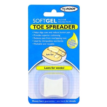 - The Profoot SoftGel Toe Spreader relieves bunion and toe pain by separating and properly aligning your big and second toes