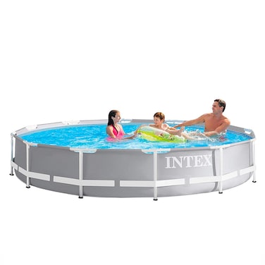 Enjoy hours of outdoor fun with the Intex Prism Frame 3.66m x 76cm pool. It is constructed with puncture-resistant 3-ply durable material. It features all of the great benefits of Metal Frame pools, and are enhanced with strong powder-coated steel tubing and stylish and upscale looking liner color. Innovative new T-Joint design allows for simplified, quick and easy assembly. Hydro Aeration Technology is incorporated into the cartridge filter pump providing improved circulation and filtration, improved water clarity, and increased negative ions at the water surface.