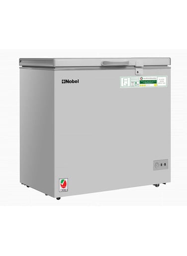 Nobel NCF171RH Deep Freezer, a versatile appliance designed to meet your freezing needs with convenience and reliability. With a detachable storage basket and a top-lid featuring a large arc handle, this freezer offers easy access and organization. The thermostat setting, warning lights, and smooth wheels ensure precise control, visibility, and mobility. Boasting 141 liters of net volume, it's perfect for both commercial and household usage. The Climate Class T-rated NCF171RH withstands hot summers, supported by an ESMA 3-Star rating and low energy consumption of 324.85 kWh per year. The silver-colored freezer, equipped with a lock and key for child safety, weighs 32 kg (Net) and 36 kg (Gross). As a member of the Nobel Family, backed by over 35 years of business, it brings together quality, reliability, and a team dedicated to prompt assistance.