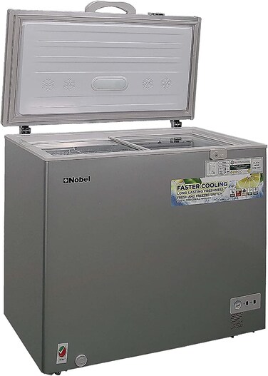 Nobel NCF216RH Deep Freezer, a versatile appliance that seamlessly combines performance, reliability, and family-oriented features. With a net volume of 192 liters, it boasts a detachable storage basket, top-lid with an ergonomic handle, and smooth wheels for easy transport. Ideal for commercial and household use, this freezer endures hot summers with its Climate Class T rating and ESMA 3-Star rating, consuming 357.7 KWh per year. The environmentally friendly R600A refrigerant ensures efficient cooling. With a sleek silver design, child-safety lock, and a low noise level (<42dBA), it offers convenience and peace of mind. As a member of the Nobel Family, backed by over 35 years of expertise, the NCF216RH ensures quality, reliability, and a team dedicated to addressing any concerns promptly.