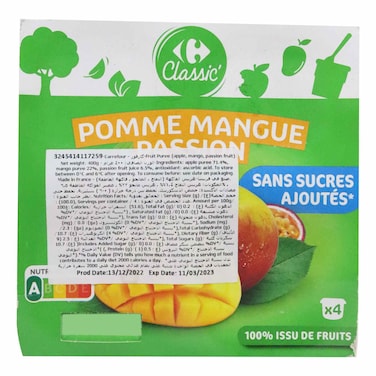 Carrefour Classic Apple Mango Pineapple Fruit Dessert 100g Pack of 4