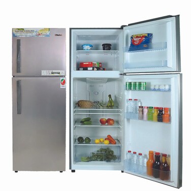 My Features: I am a double door no frost top mounted refrigerator. My Refrigerator compartment has: 275 Litres Capacity, 3 bottle racks in the fridge door, 3 glass shelves, an interior LED Light, Vegetable crisper with cover, and an Egg Tray. My No Frost Freezer compartment has: 93 Litres Capacity, 1 freezer, and 2 bottle racks on the door. I also have a removable gasket, adjustable legs to remain stable on uneven floors, and a strong HQD grip handle. Because of my compact design and silent operation with a noise level >40dB, you can keep me any place you like!