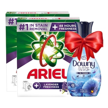 Ariel Plus Detergent Powder Lavender Freshness 2.5kg Pack of 2 And Downy All In One Fabric Softener Valley Dew 880ml