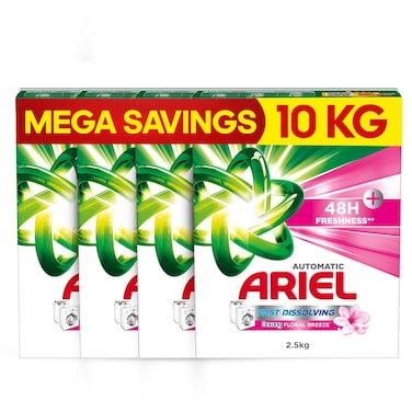 Ariel Core+ Fast Dissolving Washing Powder for Automatic Washing Machine Downy Floral Breeze 2.5kg Pack of 4