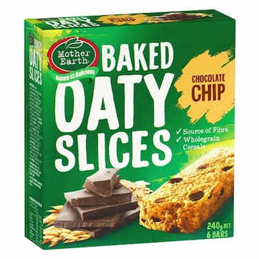 - Mother Earth Chocolate Chip Baked Oaty Slices are perfect for on-the-go enjoyment