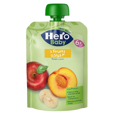 Hero Baby Puree, 3 Fruits, 6 Months+, 100g