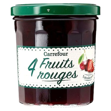 - Delicious jam made with four red fruitsPerfect for spreading on toast or pastries