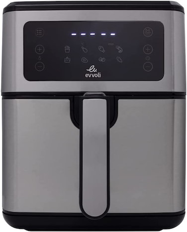 Evvoli Air Fryer 5.5 Liters, Digital Control Panel Display, 8 Preset Programs With Built-In Preheat function, 1850W, Brush Stainless Steel & Black, EVKA-AF5508D