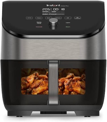 The Instant Vortex Plus ClearCook Air Fryer enables you to savor your favorite fried dishes more healthily, without compromising on taste. Its transparent window and internal light allow you to monitor the cooking process without opening the basket. Furthermore, the OdorErase built-in replaceable air filters help to eliminate unpleasant cooking smells. And with the EvenCrisp air flow technology, you can achieve a perfect golden finish and crispy tender results for fresh or frozen foods, with little to no preheating time and using up to 95% less oil.
