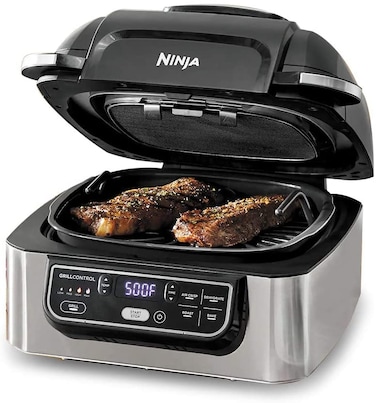 Product Description: Meet the Ninja Foodi Smart Grill, the Smart grill that sears, sizzles and air fry crisps. The innovative Smart Cook System helps you achieve the perfect doneness from rare to well done at the touch of a button without the guesswork. With its XL capacity, you can grill even more large family meals, virtually smoke free. It even air fry crisps for guilt-free fried favorites.