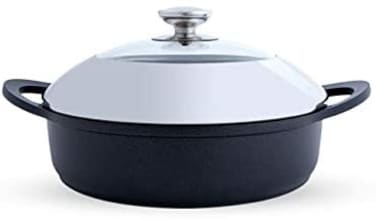 - These aluminium frypan is lightweight, dent & scratch resistant, non-corrosive and an excellent thermal conductor of heat making it the ideal material for cooking food. Aluminium die-cast is the best metals for conducting heat allowing for quick heating and retaining of heat.<li>Technical Specification: <li> Featuring highest quality Casting Aluminium material with Teflon Select non-stick interior which gives it the effortless release of food.<li> Versatile shapes that accommodates several different cooking techniques.<li> Long handles that stays cool on the stovetop for hours of comfortable cooking.<li> Sparkling glass-and-stainless covers give you a clear view of simmering casserole and pot, too.<li> Material: Die-Casting Aluminium<li> Exterior treatment: Teflon Polytetrafluoroethylene(PTFE)<li> Interior treatment: Teflon selects coating<li> Cover: Tempered glass with stainless steel rim<li>Weight: 14.7 kg<li>Dimensions: 41.2 × 40.6 × 46.4 cm